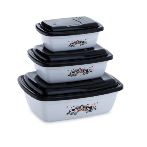 Pote com 3 peças PMG retangular decorado 3966 - Rainha