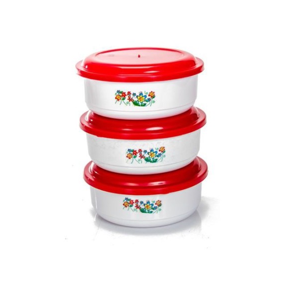 Gold pote redondo MD com 3 peças decorado 582/3D - Ercaplast