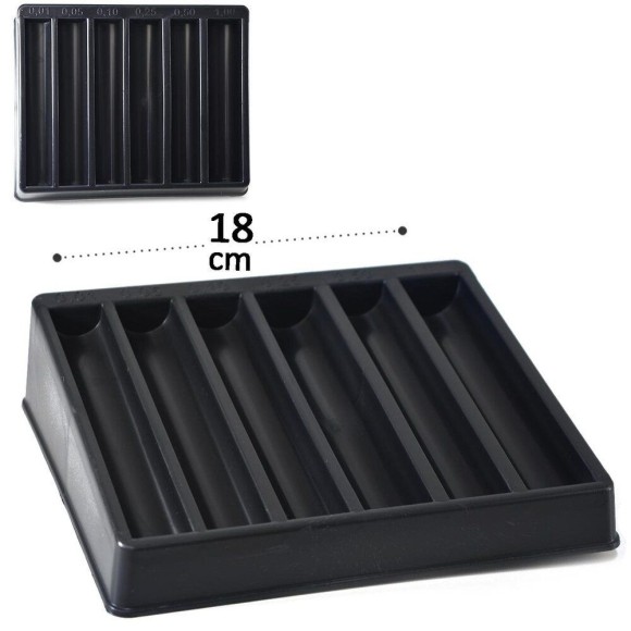 Porta Moeda De Plástico Para Balcões - Contém 6 Divisórias para Moedas de 1 Centavo - 5 Centavos - 10 Centavos - 25 Centavos - 50 Centavos - 1 Real. Referência do fornecedor : 2082 Código de barras : 7898902084357 Marca : BUDEPLAST Tipo de material : Plástico Cores ou Estampa : Preto Dimensões do Produto : 19 X 4,5 X 4,5 CM Peso Bruto (Gramas) : 0.138 Quantidade de unid. na caixa : 50