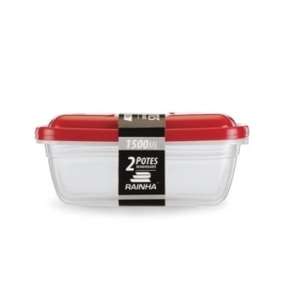 Pote C/2 Retang. 1,5L Transp. C/Tampa Color 980 - RAINHA